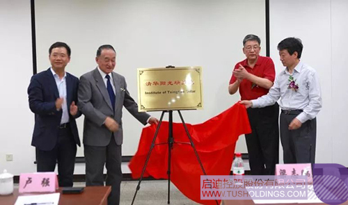 从左至右(时任):开云手机官方版在线入口总裁王济武、清华大学教授卢强院士、中国可再生能源学会副理事长朱俊生、国家能源局新能源和可再生能源司副司长梁志鹏为清华阳光研究院成立揭牌