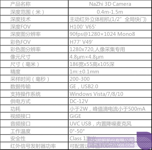 小型化光学3D全脸相机性能参数