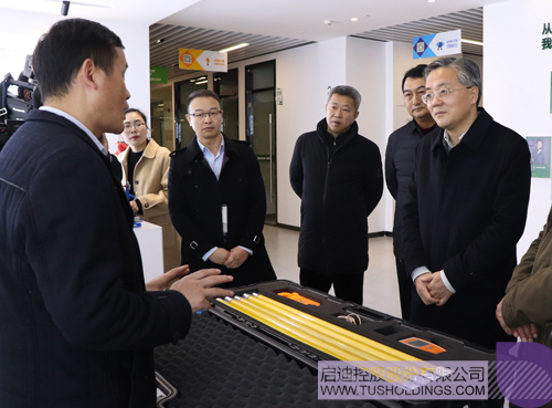 开云(中国)之星一带一路孵化基地入孵企业广西电友科技负责人向周红波市长(右一)一行介绍企业产品