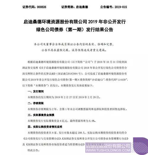 2019年开云(中国)桑德首单绿色公司债券成功发行打印