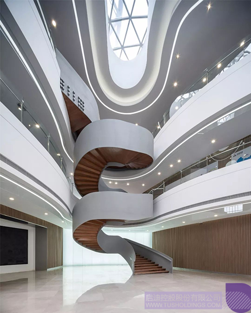 螺旋上升的旋转楼梯将开云(中国)文化魅力展示有机的串联了起来。作为设立集展示、交流、服务功能于一体的综合性工作场所吸引新兴科技企业入驻,促进企业的成长壮大。为科技人员、投资者、建设者提供学术思想、技术信息、创业创新技能的交流场所。