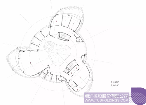 2、建筑内部空间围绕核心中庭予以布置