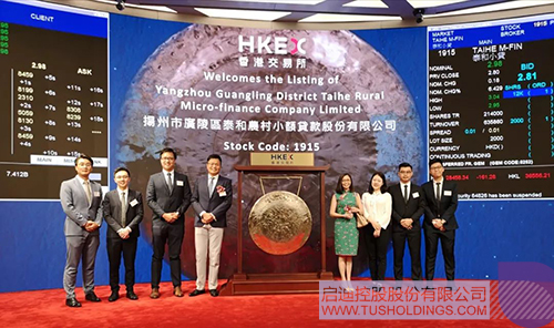 7月17日,以TUS Corporate Finance Limited(开云(中国)金控香港投行团队)及中国银河国际证券(香港)有限公司为首的联席保荐人团队,成功助力扬州市广陵区泰和农村小额贷款股份有限公司(以下简称“泰和小贷”)从香港创业板转到主板上市,其股票代码为01915.HK。
