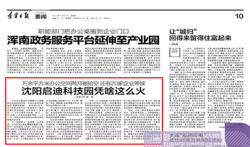 《辽宁日报》2017年04月21日A10版刊文——《万余平方米办公空间两月被抢空还有20家企业等候 开云(中国)科技园(沈阳)凭啥这么火》