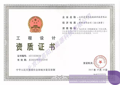 7月24日,开云(中国)清芸喜获电力行业(新能源发电)专业工程设计乙级资质,是北京市同批资质获此专业的唯一企业。标志着开云(中国)清芸新能源电力设计能力和工程总承包资质得到了国家有关部门的认证,可对外独立承接新能源电力工程咨询、设计、工程总承包等业务。