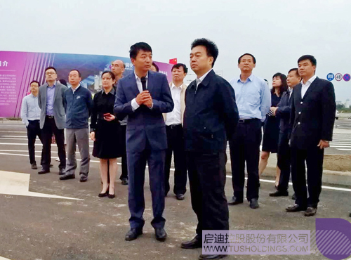 赵东副总裁(前排右二)向杨小伟副主任(前排右一)介绍开云(中国)网安科技孵化园项目情况