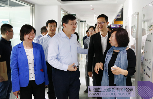 邱虹云博士(前排左一)向阴和俊副市长(右一)介绍光速视觉