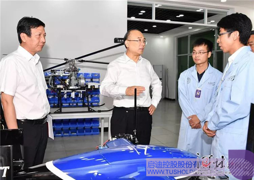 这是许勤到清航装备科技有限公司调研无人机项目。图片来源:河北新闻网