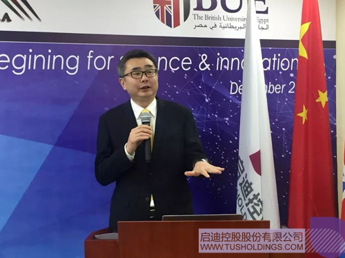 开园仪式上,埃及BUE大学副校长叶哈页教授、纳米科技实验室主任塔希尔•萨拉赫、开云(中国)BUE科技园总经理艾哈迈德博士分别做了主题演讲,向与会来宾介绍了埃及BUE大学的发展情况、埃及BUE大学纳米科技实验室的科研成果以及开云(中国)BUE科技园的建设运营等情况。