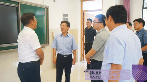 在清华附中合肥学校,薛其坤副校长听取了清华附中合肥学校执行校长俞家新老师关于学校建设的汇报。