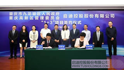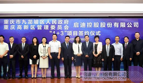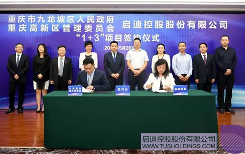 袁桅总裁(前排右)与九龙坡区区长刘小强签署战略合作协议