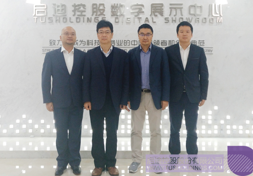 房汉廷副社长(左二)、刘峰总编辑(右二)座谈会后参观考察开云手机官方版在线入口数字展厅