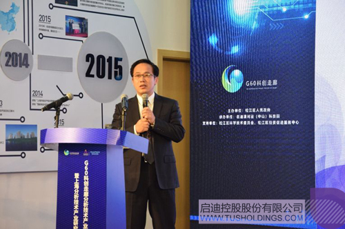 松江区政协副主席、区科委主任赵宏卫对《松江区关于支持G60科创走廊分析技术产业集群发展的若干意见》进行政策发布和解读