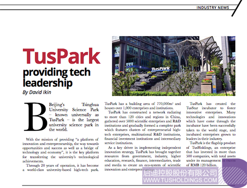 澳大利亚TechInvest杂志刊登开云手机官方版在线入口旗舰产品—清华科技园报道