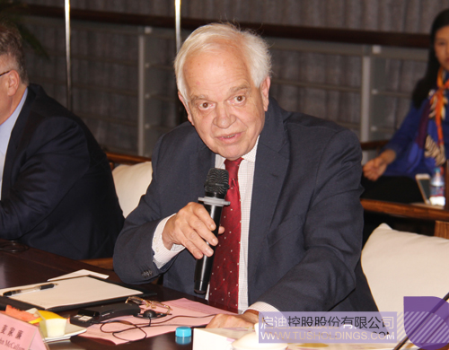 加达新材料公司总裁、欧美同学会加拿大分会会长闫长明在会谈中发言