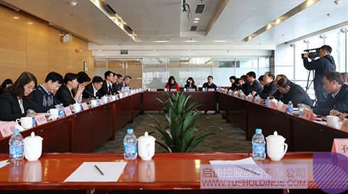 袁桅总裁(右四)会见黄燕明主席(左四)和傅惠民副主席(右三)一行