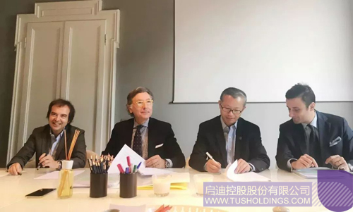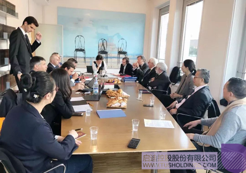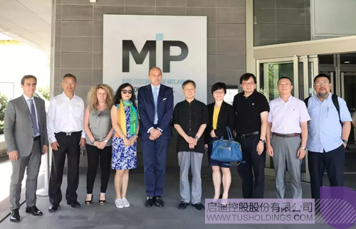 2017年7月,袁桅总裁(左二)再次率队与鲁晓波院长一行(左一)赴米兰考察物业选址