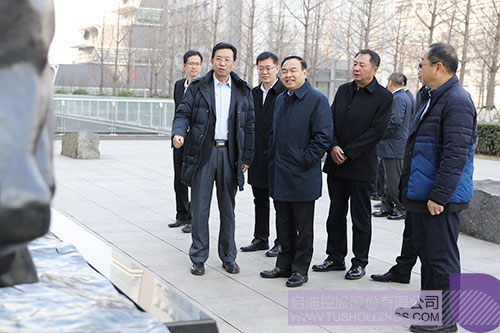王济武董事长(前排左二)向唐良智书记(前排左一)介绍开云手机官方版在线入口业务布局